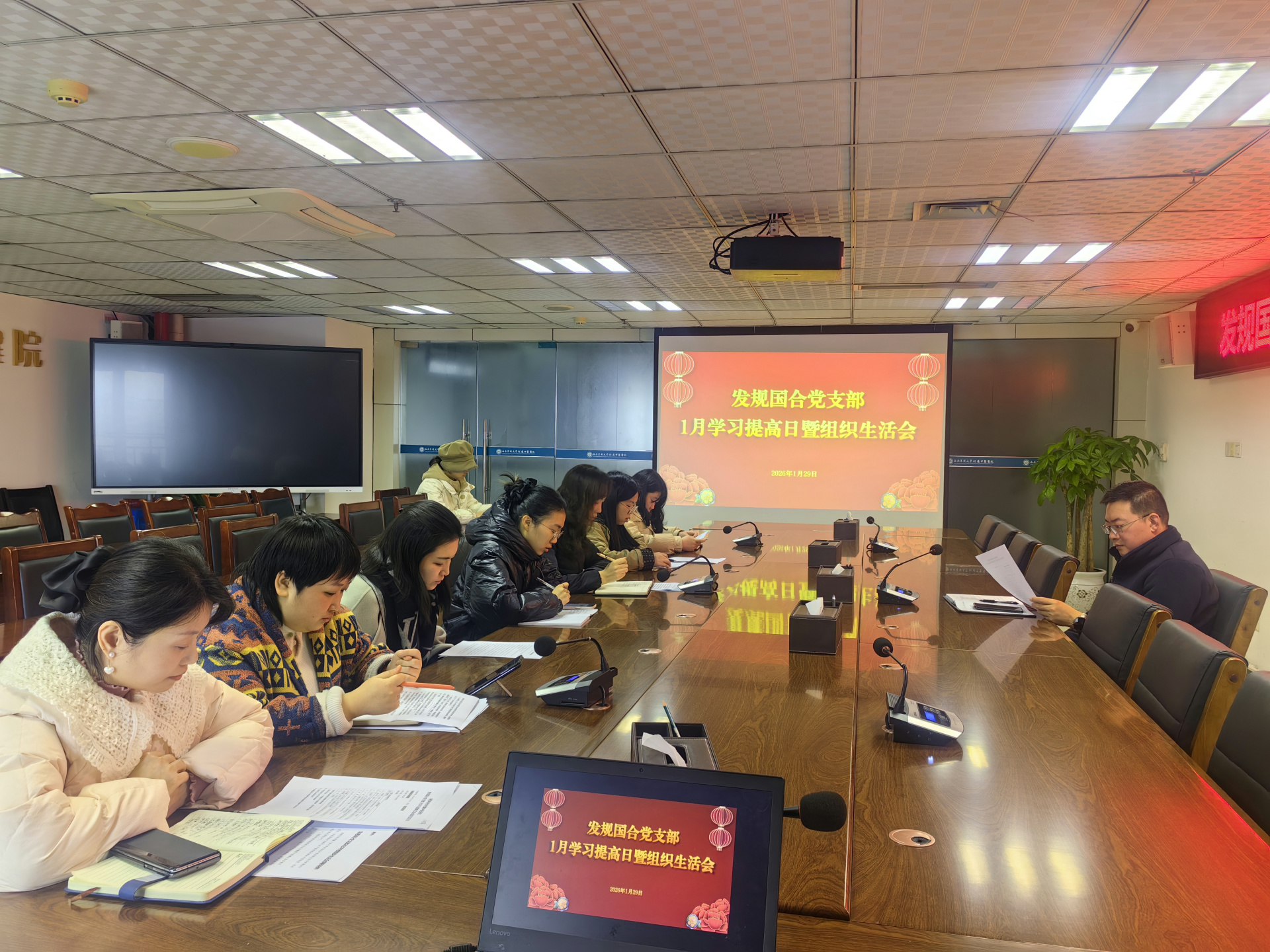 1月26日,产科党支部召开党员大会。宣传委员兼组织委员云杉同志领学了“国家主席习近平二〇二六年新年贺词”和习近平总书记关于学习贯彻党的二十届四中全会精神的重要讲话精神;党支部书记喻小兰同志作春节前廉洁提醒,并安排2025年度组织生活会相关工作。