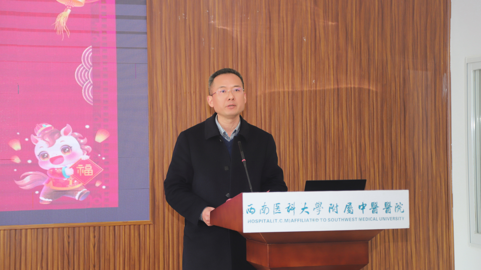 代天祥讲话。他代表医院党委向全体退休职工和返聘专家致以诚挚的节日问候和崇高的敬意。他回顾了医院从创业初期到蓬勃发展的奋斗历程,感谢老前辈们将青春与智慧奉献给医院,奠定了医院深厚的文化底蕴和精神品格。他指出,2026年是“十五五”规划开局之年,也是医院“对标争先、创新突破”之年,医院将持续强化党建引领,深化改革创新,着力破解发展难题,真诚希望各位老前辈继续发挥经验和威望优势,为医院发展建言献策,共同谱写医院高质量发展的崭新篇章。