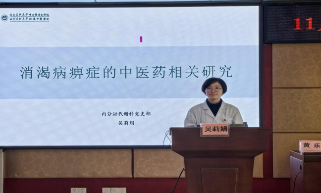 11月26日,由内科党总支、继续教育党支部主办,内分泌代谢科党支部协办的“承岐黄薪火,传中医经典”中医经典讲座及经验分享(第24期)在学海厅举行。内科党总支所辖党支部部分党员,临床、辅检科室相关人员等参加了活动。活动由内分泌代谢科党支部书记王雪主持。