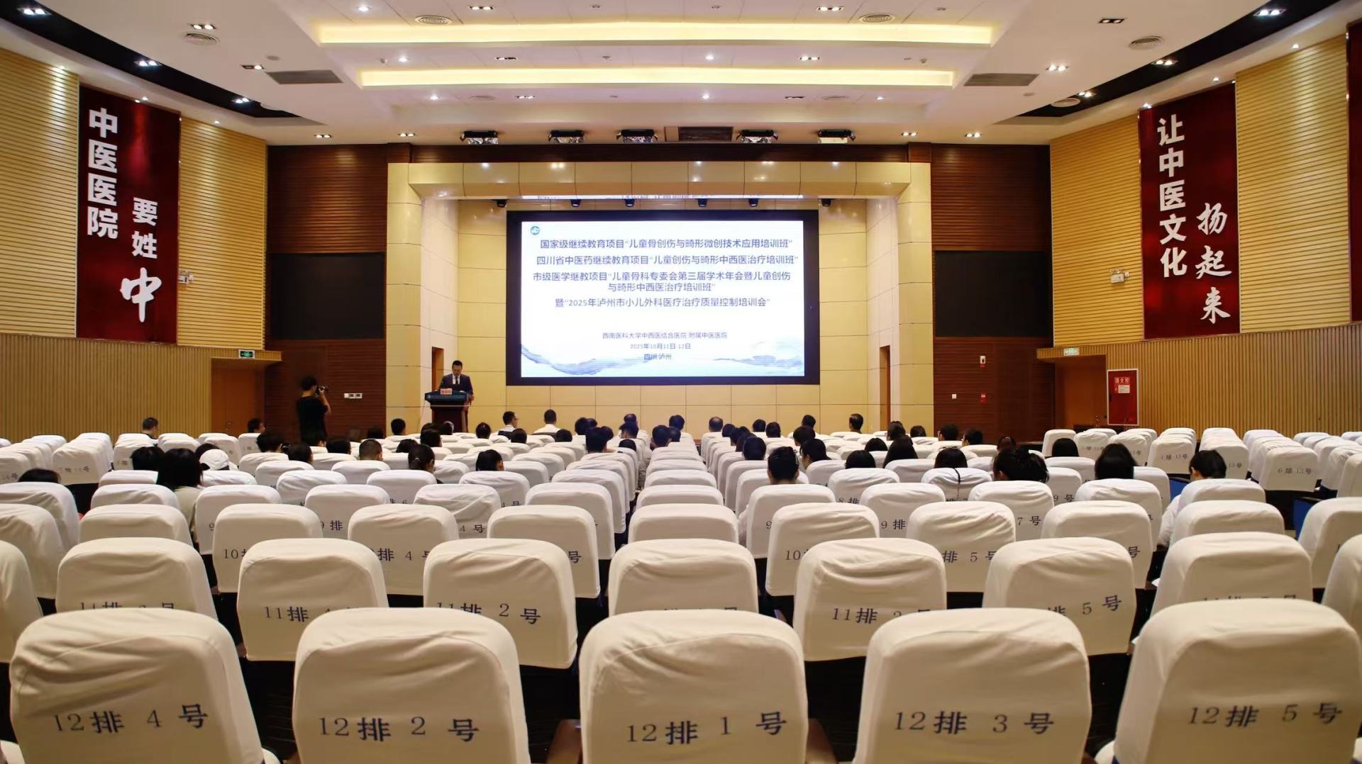 10月11-12日,国家级继续医学教育项目“儿童骨创伤与畸形微创技术应用培训班”、四川省继续教育项目“儿童创伤与畸形中西医治疗培训班”、泸州市继续教育项目“儿童骨科专委会第三届学术年会暨儿童创伤与畸形中西医治疗培训班”及“泸州市小儿外科医疗质量控制培训会”在我院顺利举办。我院院长汪国友、省内外授课专家及300余名相关专业人员参加了开幕式。开幕式由骨伤科手外·儿骨·烧伤整形组副主任陈孝均主持。