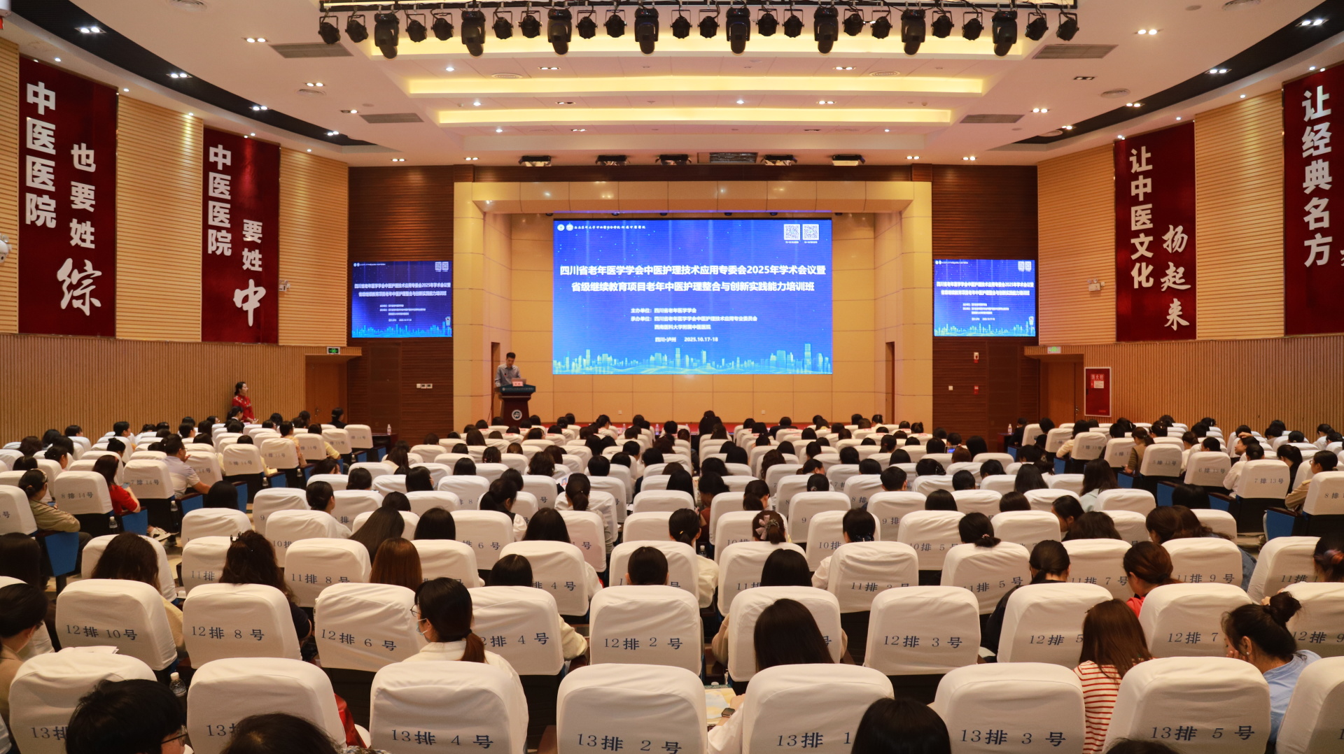 10月17-18日,四川省老年医学学会中医护理技术应用专委会2025年学术会议暨四川省中医药管理局省级继续教育项目老年中医护理整合与创新实践能力培训班在我院举办。我院副院长张磊、相关授课专家及川渝地区各医疗机构400余人参加了会议。开幕式由我院护理部部长李素莲主持。