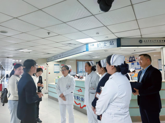 会后,李长英一行前往我院骨伤科脊柱·肿瘤一组、神经外科、产科进行实地参观,就医疗护理员的日常管理、免陪照护服务的具体实施等问题进行了现场探讨。