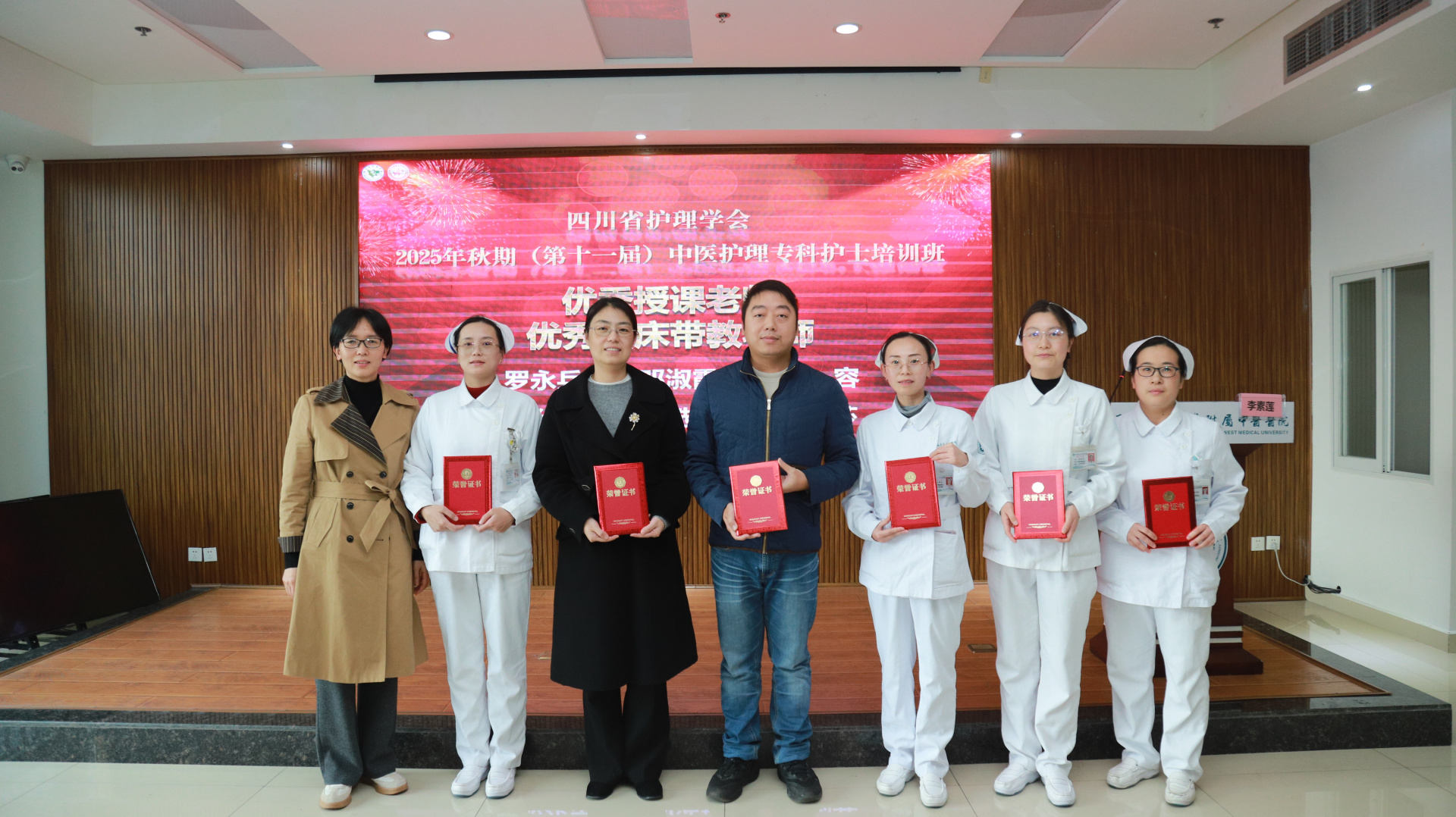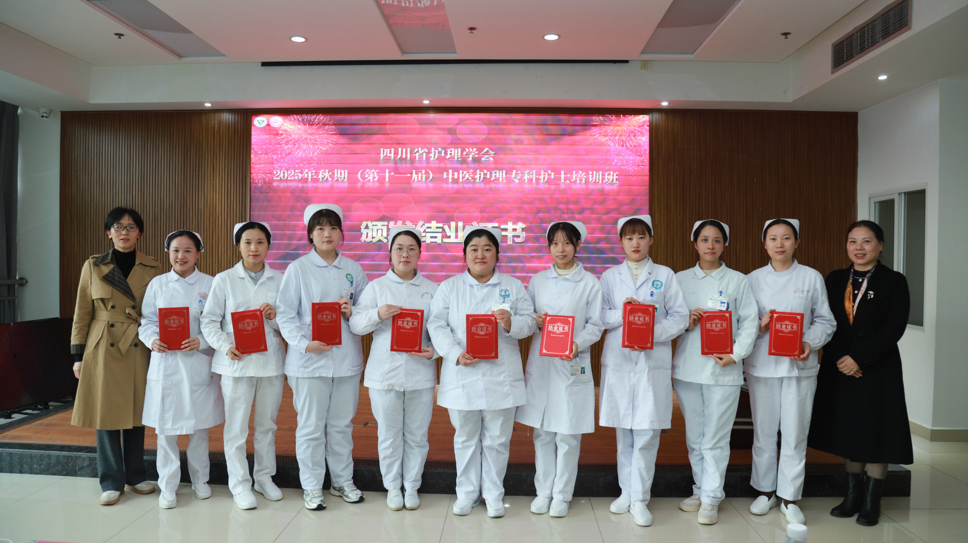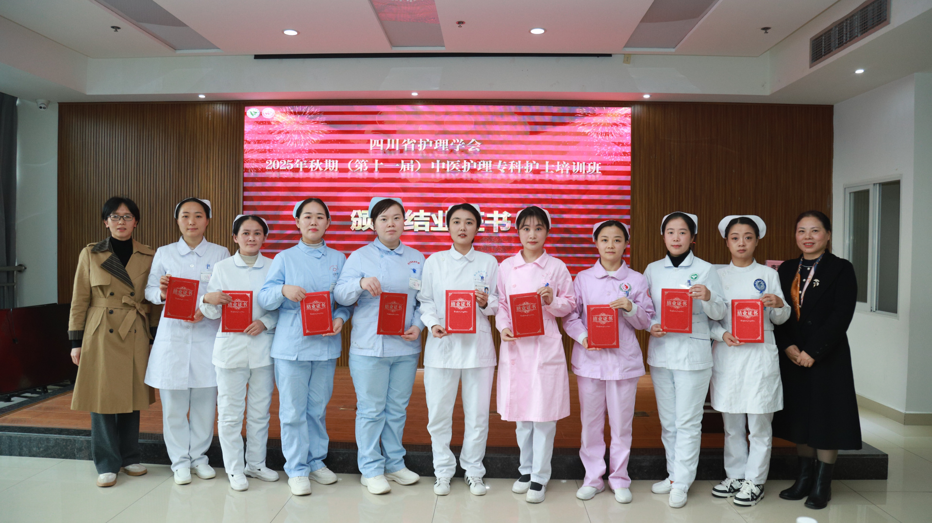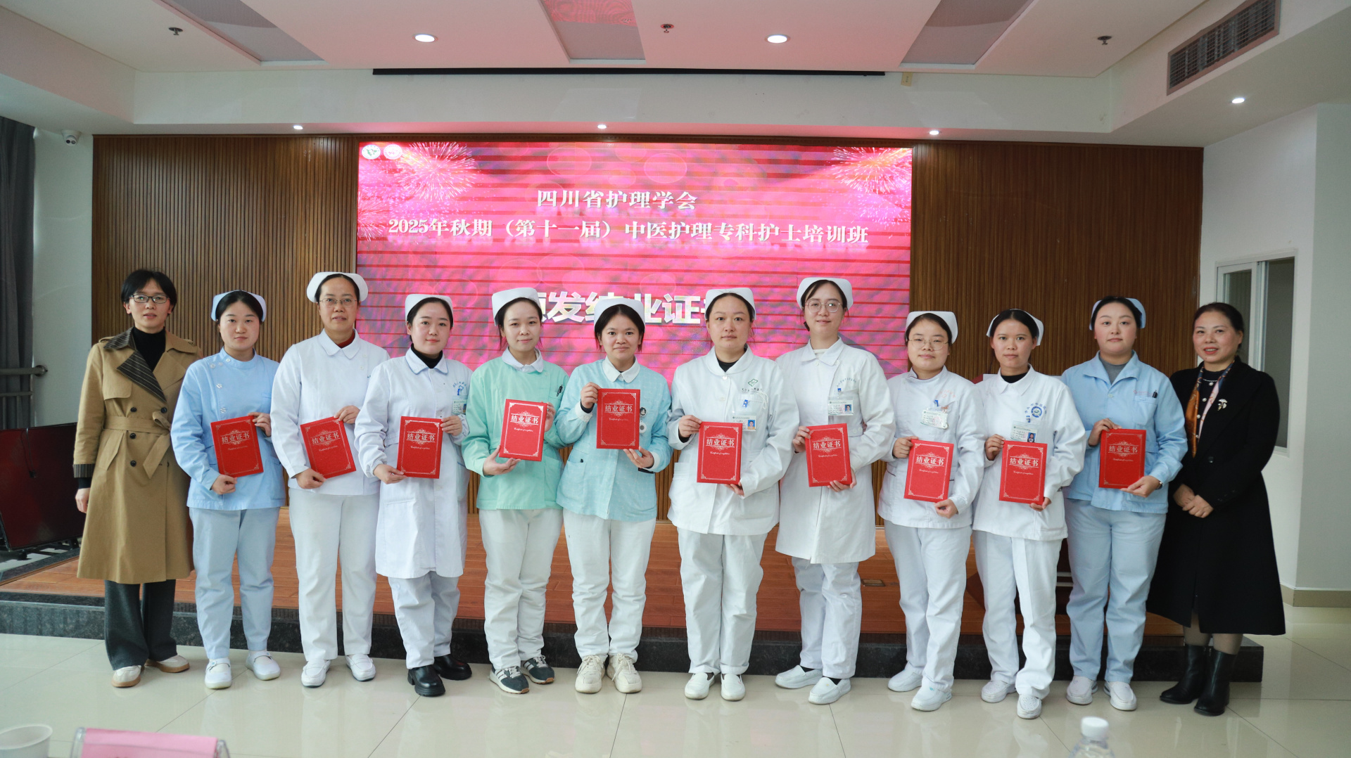 11月28日,我院举行四川省护理学会2025年秋期(第十一届)中医护理专科护士培训班结业仪式。医院院长汪国友,副院长董丽,基地负责人、相关职能部门负责人、基地科室护士长及带教老师、本届全体学员参加仪式。仪式由护理部部长李素莲主持。