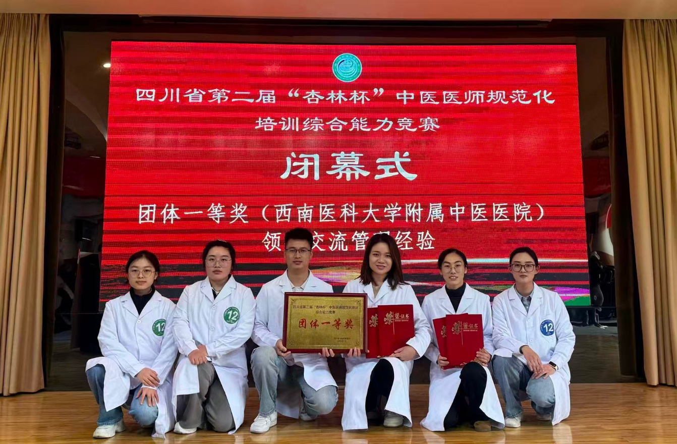 经过激烈角逐,我院带教老师针灸·推拿·康复科王莹、脾胃·风湿免疫病科陈珊珊、骨伤科创伤·正骨组张小敏,规培学员孙光祥、周小容、徐晓琴组成的西南医科大学附属中医医院代表队荣获团体一等奖。陈珊珊荣获个人综合成绩一等奖、门诊带教赛道第一名,王莹荣获个人综合成绩三等奖、中医经典理论第一名。