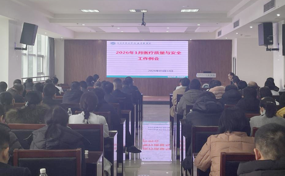 1月14日,我院召开2026年1月医疗质量与安全工作例会,院长汪国友、副院长董丽,相关职能部门及临床医技科室主任、副主任、医疗组长等参加了会议。会议由董丽主持。