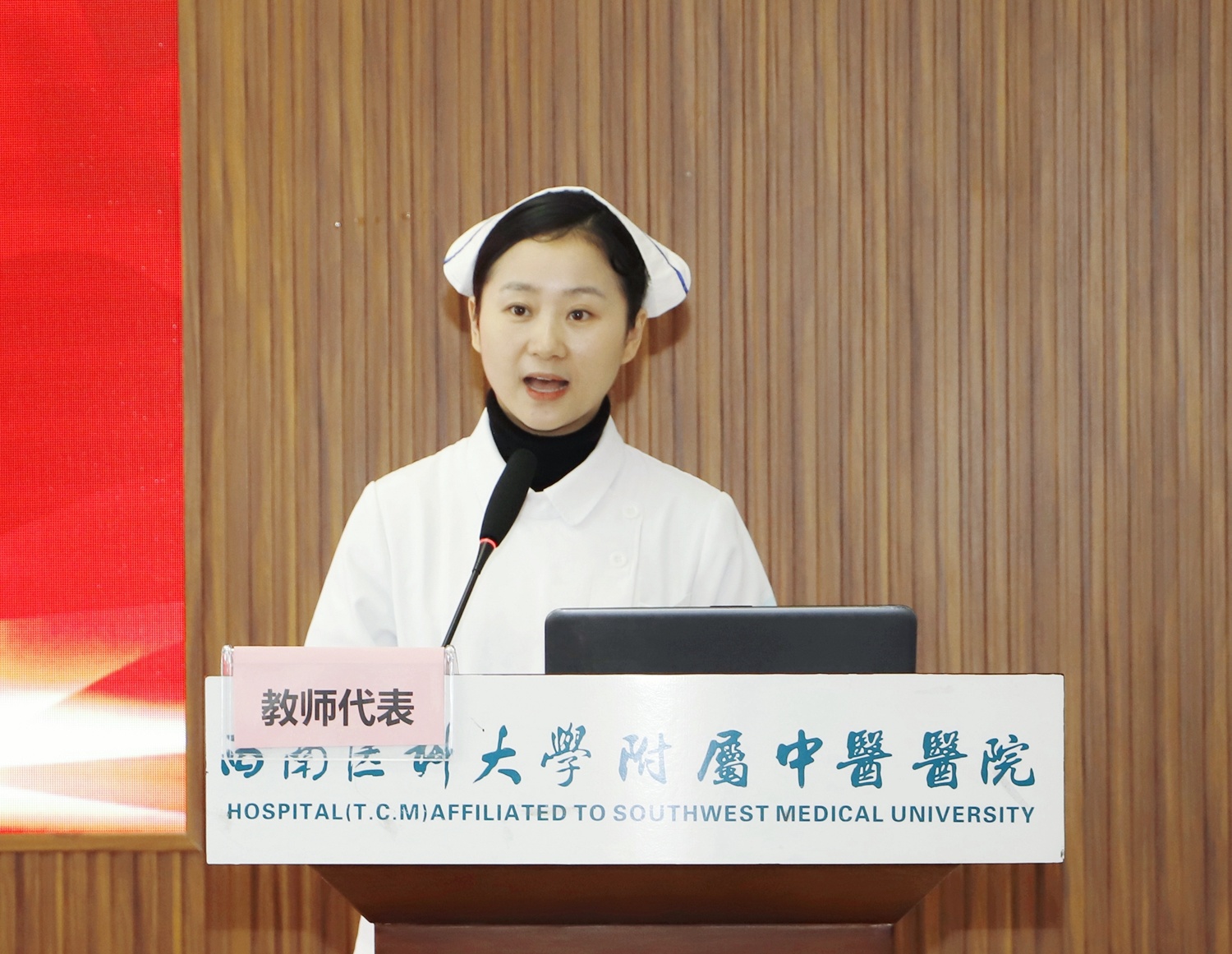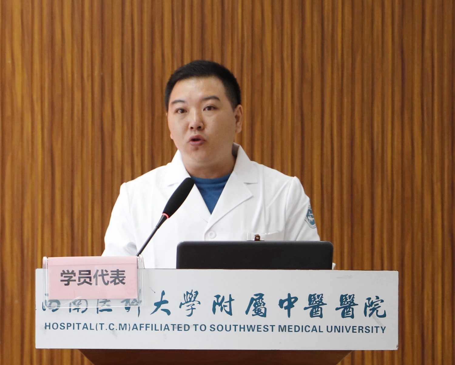 刘建讲话,他代表医院对34名专科护士的到来表示欢迎,并介绍了医院及中医护理工作情况。要求各位学员要始终立足于培养中医思维、不断提高中医专科护理质量、切实加强理论联系实际能力,为患者提供更加有温度、有厚度、有精度的中医护理特色服务。同时希望各位学员通过此次培训,相互沟通交流,增长知识,共建友谊,为中医护理事业发展添砖加瓦。
