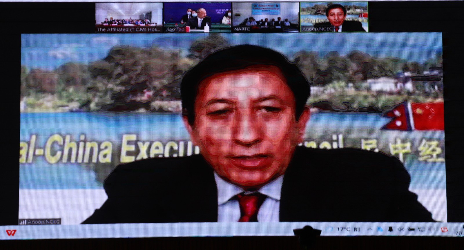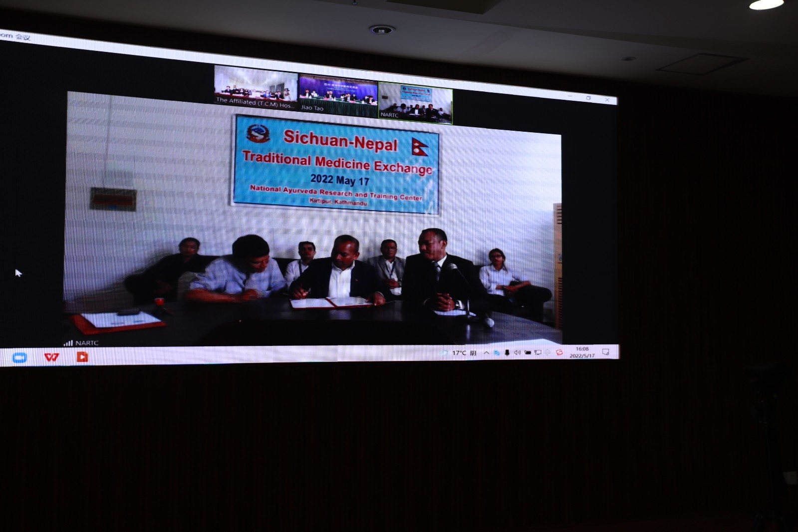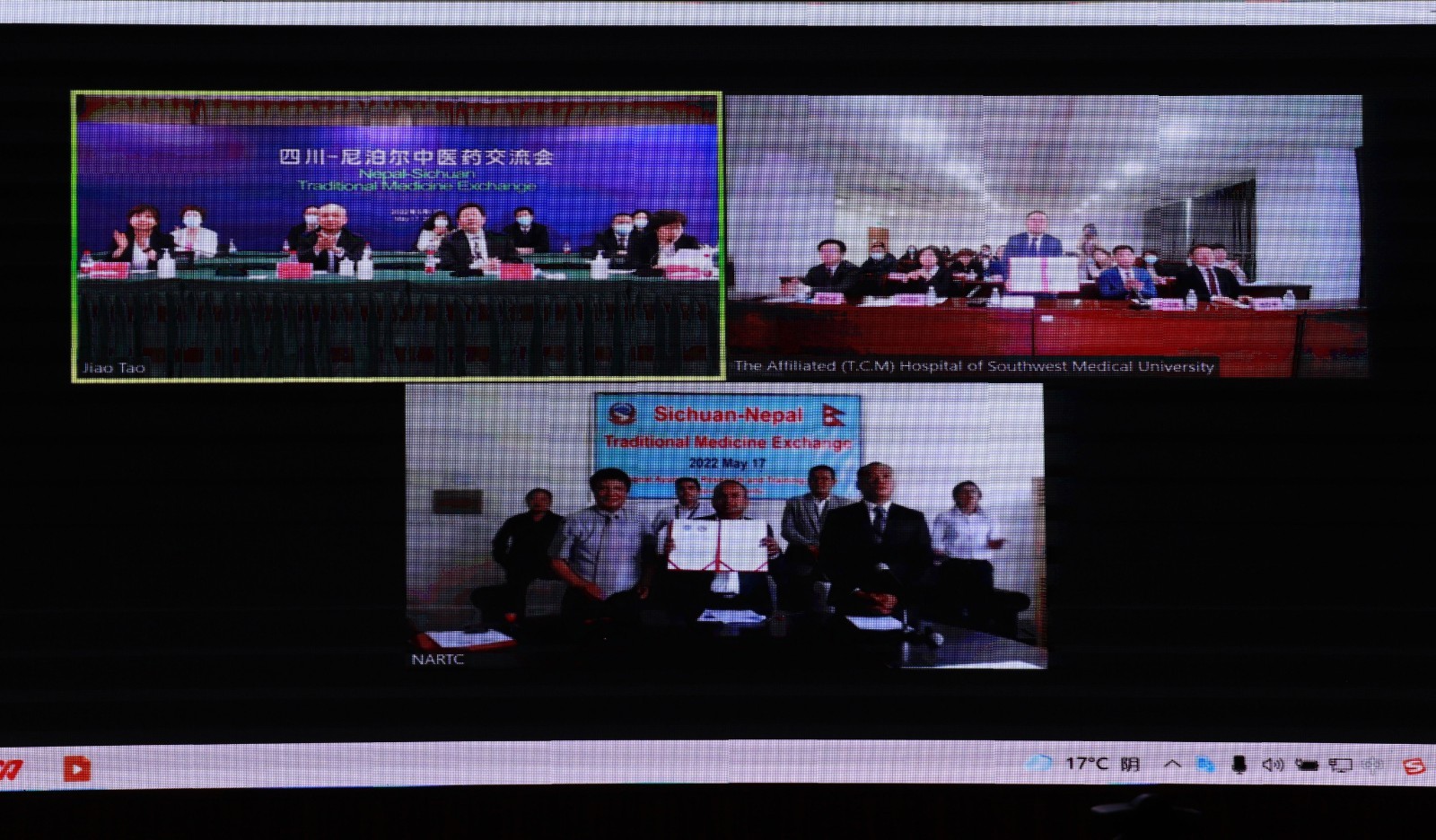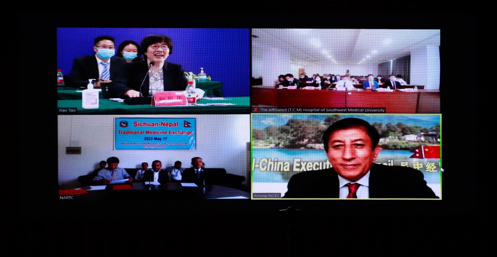 2022年5月17日,由四川省人民对外友好协会、四川省中医药管理局、尼泊尔中国经贸协会共同举办的四川-尼泊尔中医药交流会采用线上线下结合的方式召开。四川省人民对外友好协会会长洪流,四川省中医药管理局党组书记、局长田兴军,四川省中医药管理局对外合作处处长曾琳,尼泊尔中国经贸协会主席阿努伯,泸州市经济合作和外事局副局长凌朝君,泸州市纪委监委驻市卫生健康委纪检监察组组长欧诗诺,我院院长刘建、副院长徐厚平等出席了会议。会议由四川省人民对外友好协会秘书长向琼花主持。