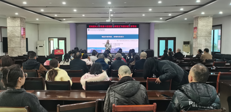 活动中,皮肤科党支部柳研以《湿疹的奥秘与预防之道》为题作了皮肤健康讲座;心身医学科钟丽以《驾驭外部风险,安顿内在压力》为题作了心理健康讲座。医护人员为人保财险泸州市分公司员工进行了义诊,医保信息党支部党员宣讲了最新医保政策。