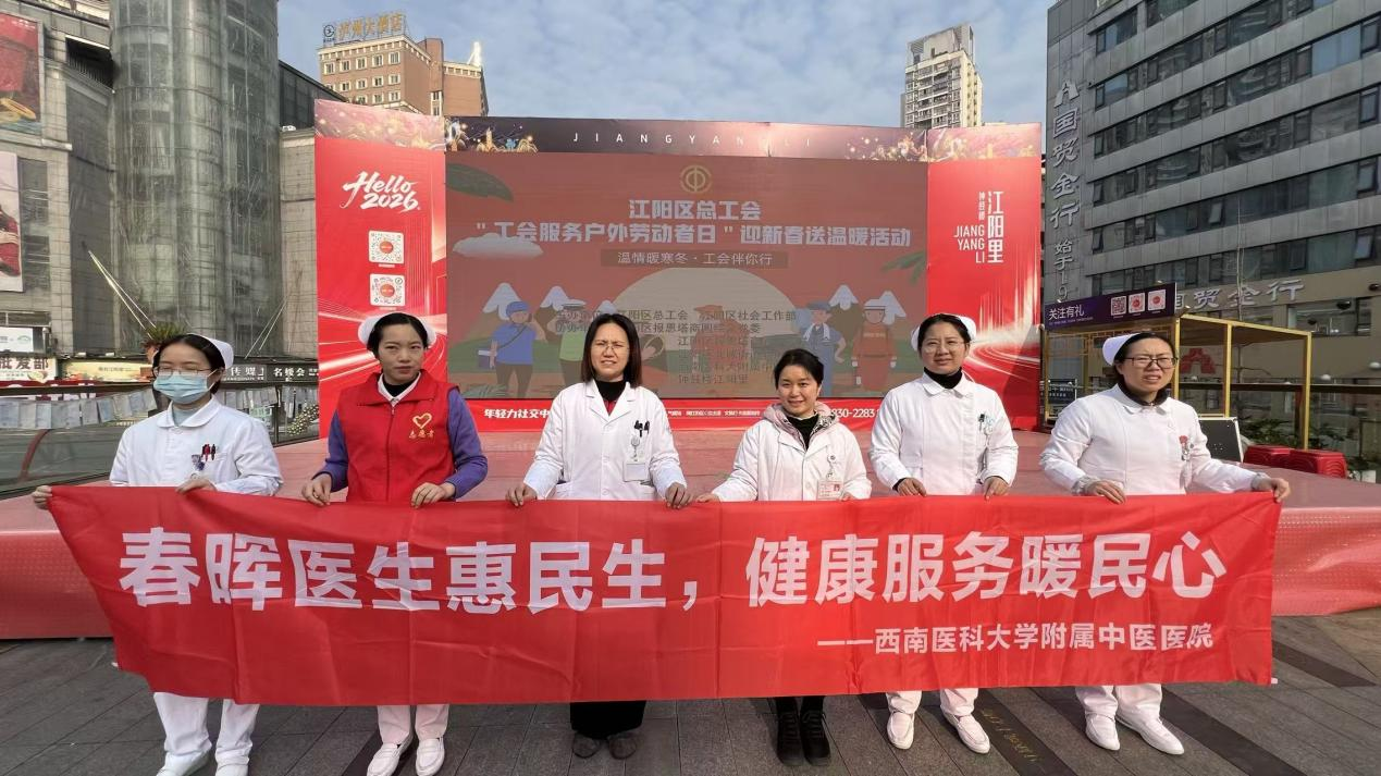 1月15日,综合内科党支部、肿瘤·血液病科(忠山)党支部、水井沟门诊党支部、水井沟急诊科党支部、科研党支部联合在泸州市江阳区钟鼓楼·江阳里开展了“党建聚力传薪火 春晖六进惠民生”义诊活动。