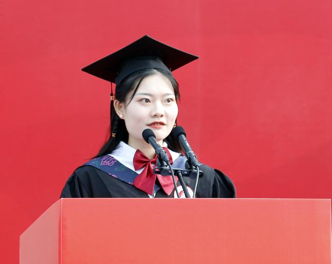 毕业生代表章惠玲发言,她代表全体毕业生诚挚感谢学校及老师5年的培养。表示今后将担负时代责任,在艰苦奋斗中砥砺意志品质、在实践中增长工作本领,在救死扶伤的岗位上拼搏奋战,让青春在党和人民最需要的地方绽放绚丽之花。