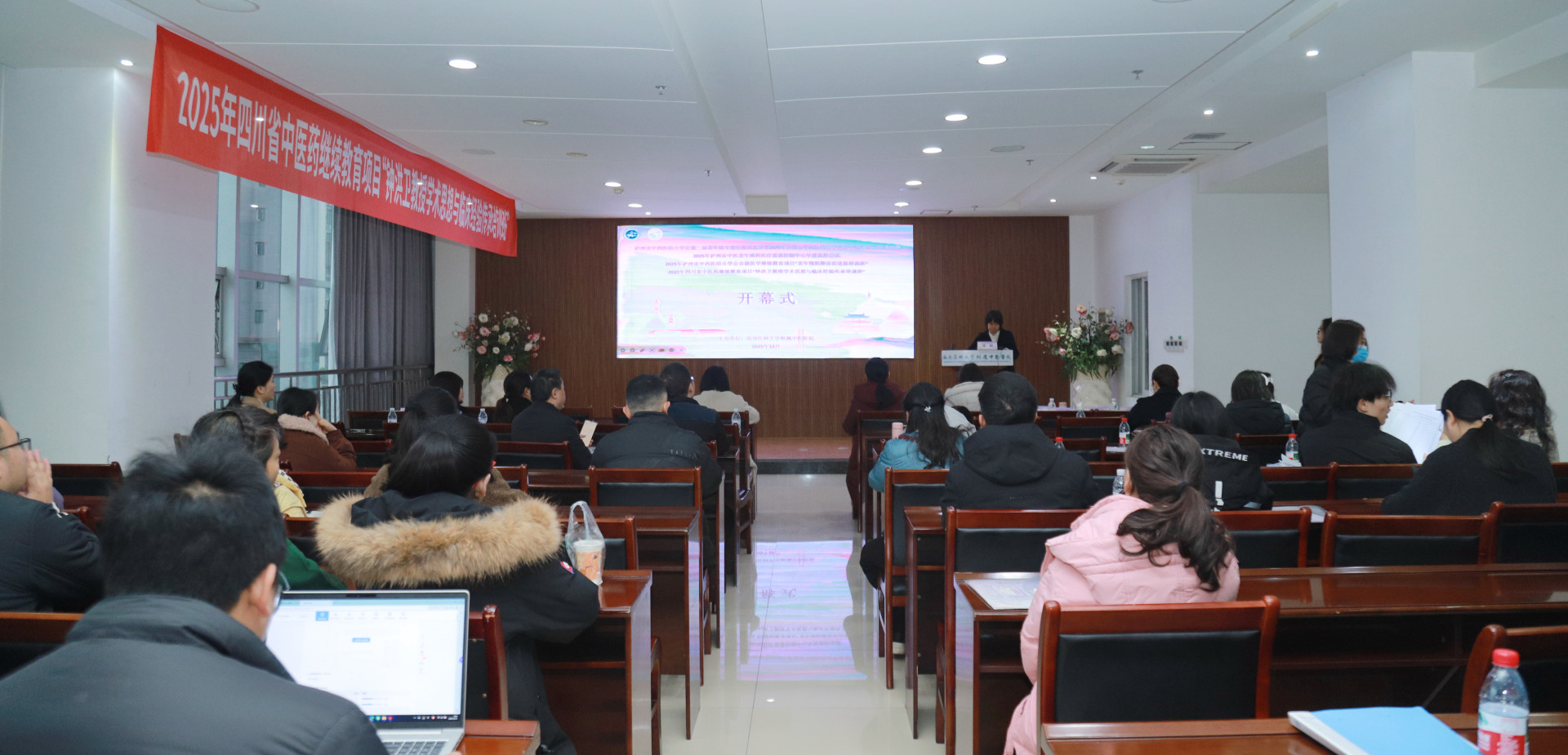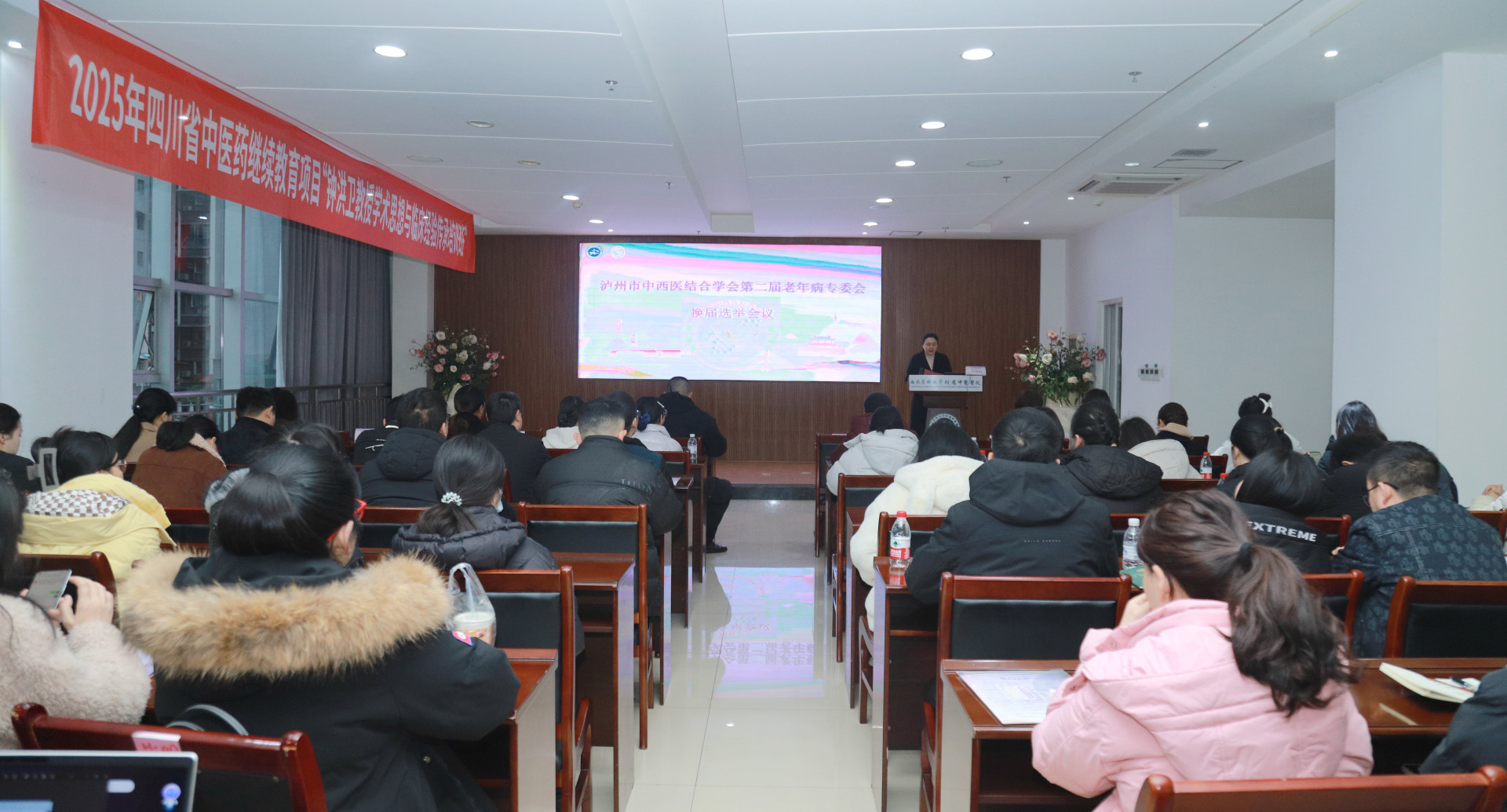12月13日,我院举行了泸州市中西医结合学会第二届老年病专委会换届选举暨2025年泸州市中西医结合学会老年病专委会学术年会、2025年泸州市中医老年病科医疗质量控制中心年度质控会议、2025年泸州市中西医结合学会市级医学继续教育项目“老年慢阻肺诊治进展培训班”、2025年四川省中医药继续教育项目“钟洪卫教授学术思想与临床经验传承培训班”。泸州市中西医结合学会会长、我院院长汪国友,授课专家及老年病专委会全体委员等参加了会议。