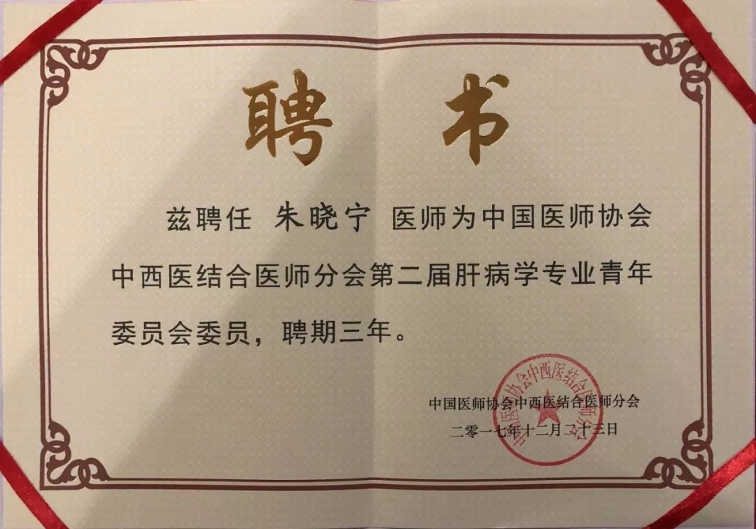 2017年12月22-24日,2017中国医师协会中西医结合医师大会在北京举行。会上,西南医科大学附属中医医院大内科副主任兼肝胆病科主任汪静教授当选为中国医师协会中西医结合分会肝病学专业委员会的常务委员,肝胆病科主治医师朱晓宁当选为中国医师协会中西医结合分会肝病学专业青年委员会的青年委员。