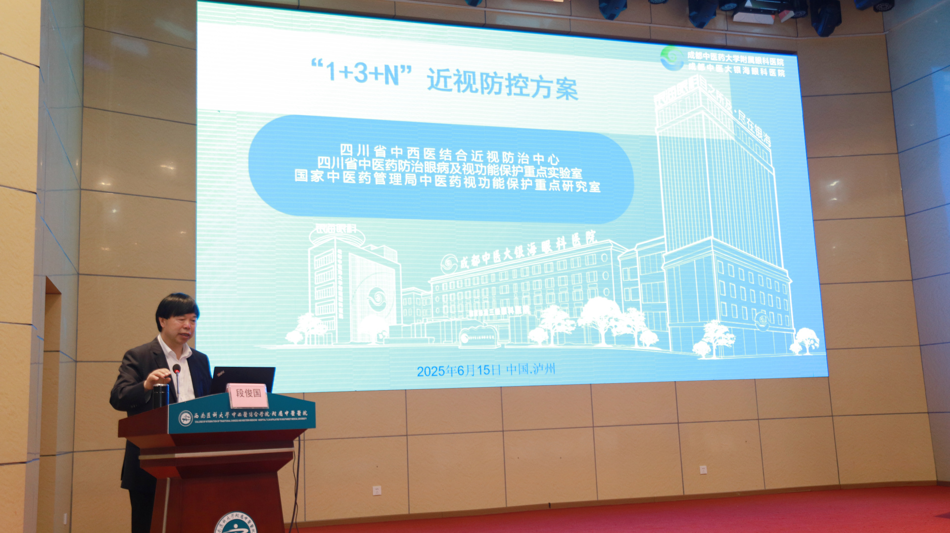 江涌致辞。他介绍了学校的基本情况后表示,本次研讨会不仅是一次学术盛宴,更是中医药传承创新的重要契机,期待与会同仁深研大师学术精髓,在互动交流中碰撞思想火花。他希望各位专家不吝分享临床智慧,为中医眼科诊疗技术突破、中医药现代化发展建言献策。西南医科大学也将以此次研讨会为契机,进一步强化中医药体系学科建设,推动国医大师经验的活态传承与创新转化。