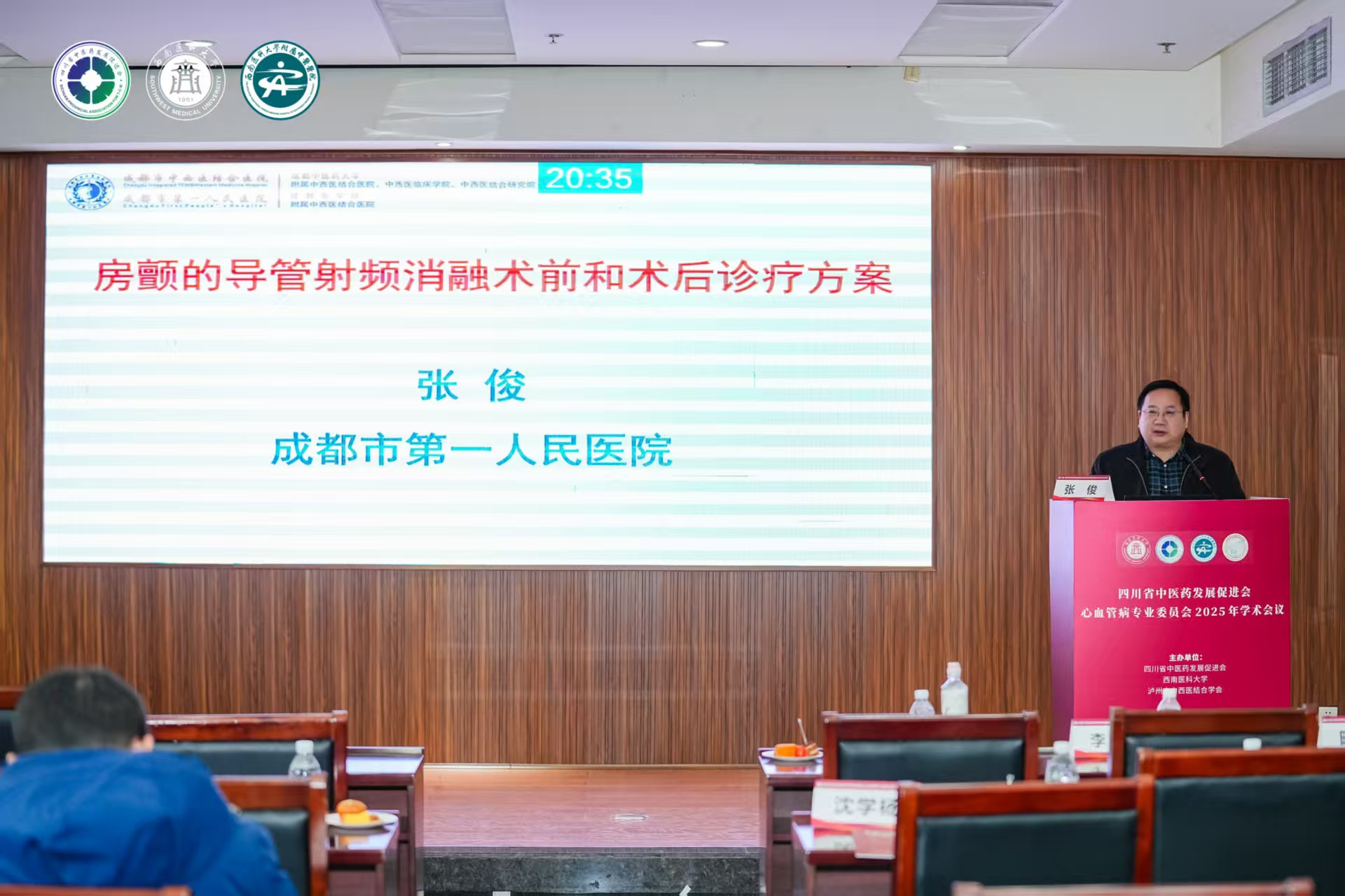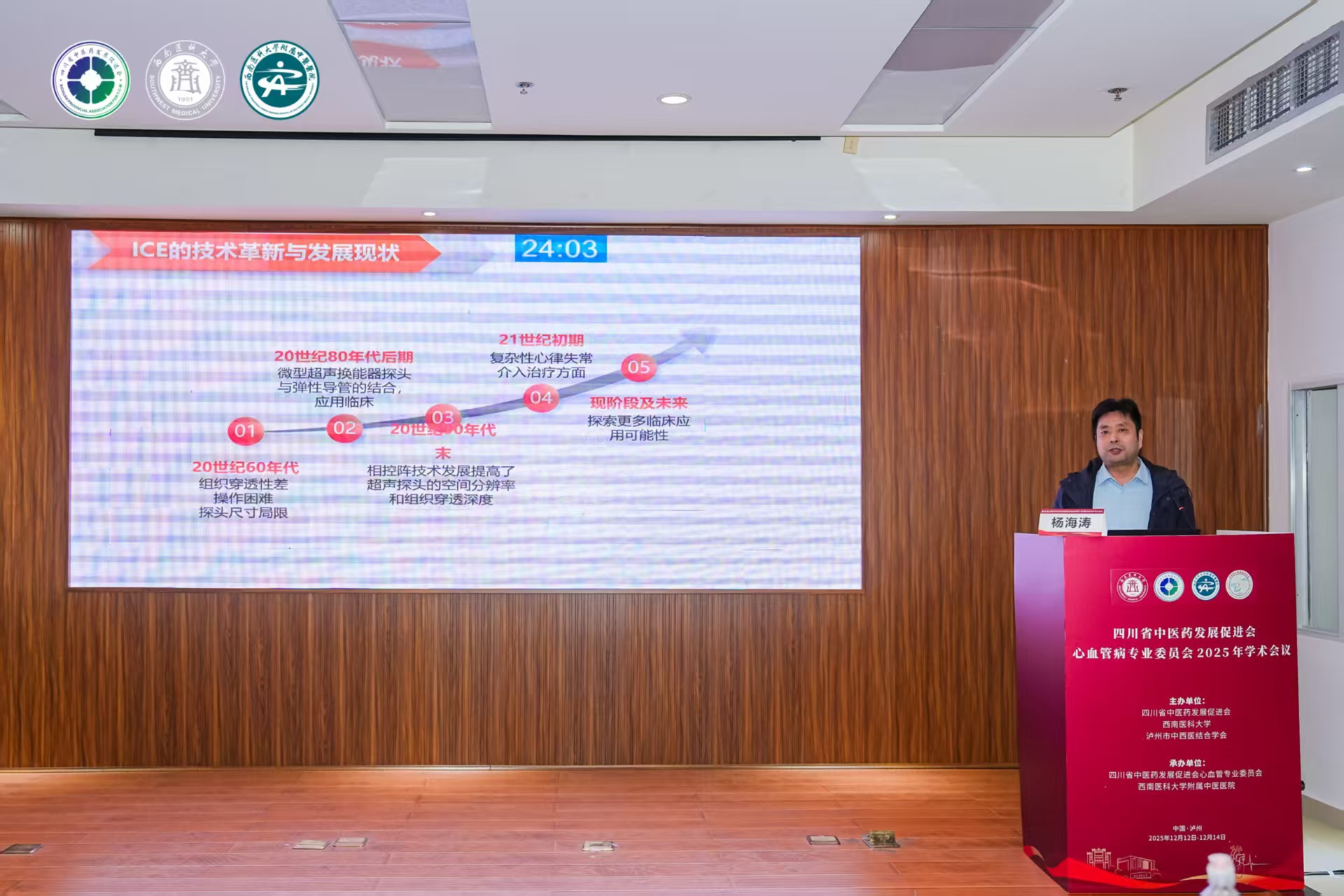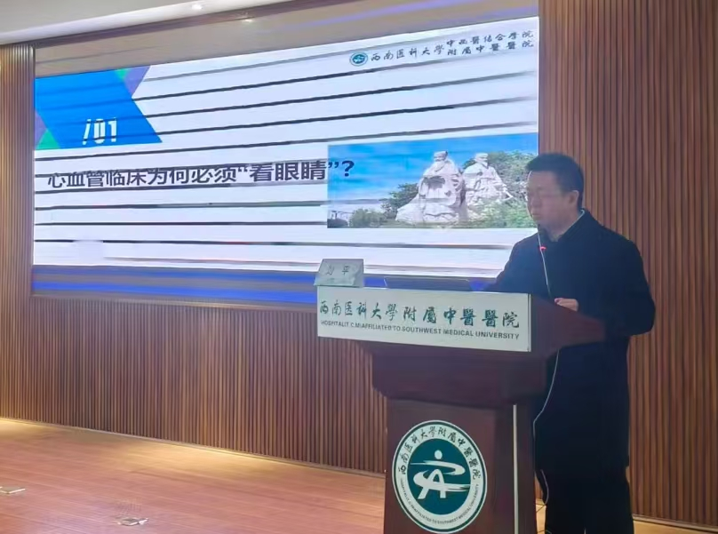 代天祥致辞。他介绍了我院基本情况和心血管内科的发展概况,希望与会同仁以此次学术会议为契机,相互交流借鉴、博采众长、增进友谊、共促发展。同时他恳请各位专家不吝赐教、倾囊相授,进一步提升中医在本地区心血管疾病领域的诊疗水平和服务能力,更好地为区域广大群众身体健康保驾护航。