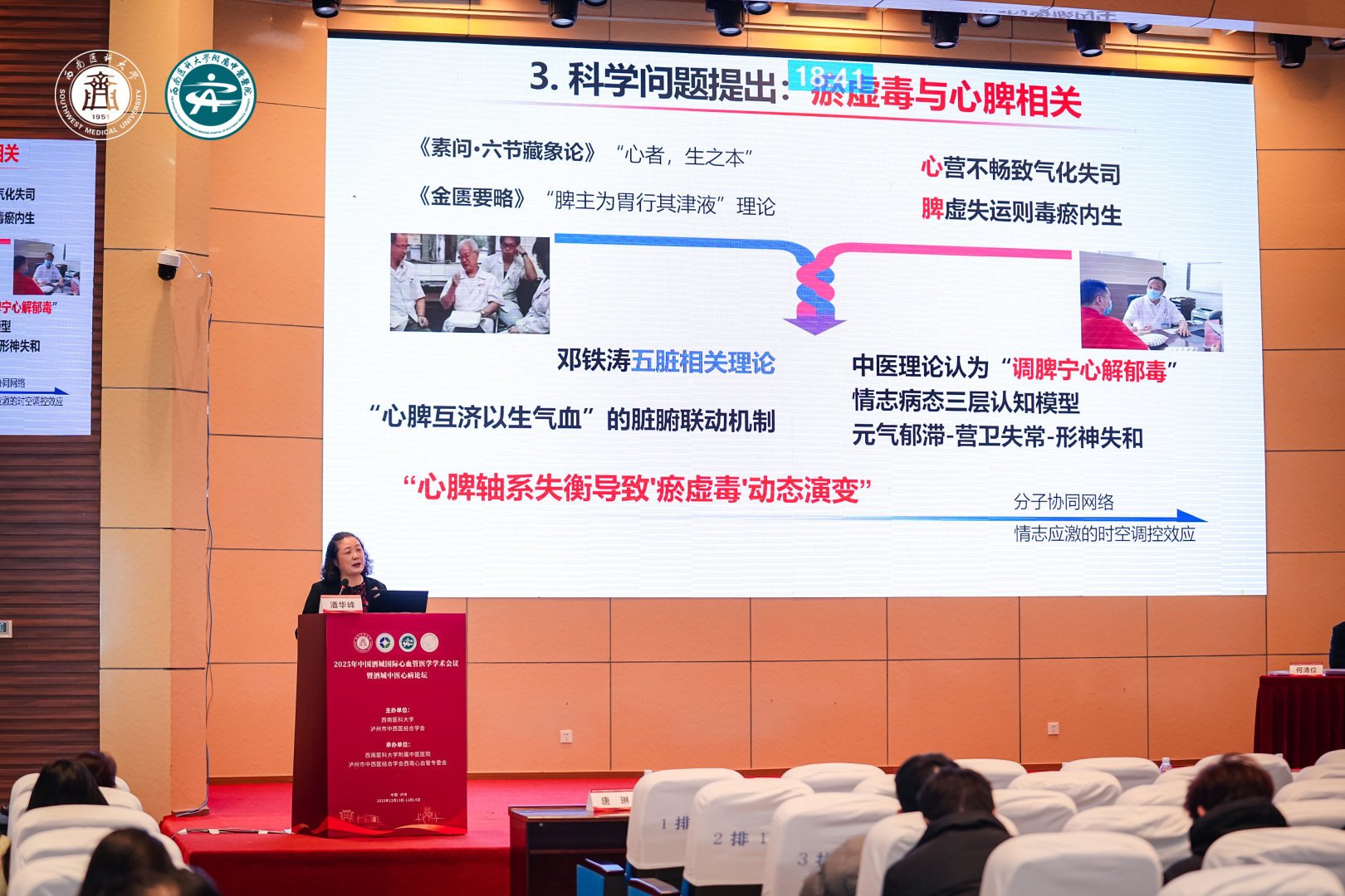 朱艳致辞。她指出,中医药凭借着独特的理论体系和丰富的临床实践,在预防、治疗、康复及慢病管理等方面有着独特优势,已成为我国心血管疾病防治体系中的重要组成部分。她希望心血管病专委会强化政治引领,精准锚定发展方向;深化临床研究,着力提升诊疗疗效;深化协同联动,广泛聚集发展合力;聚焦基层民生,践行服务百姓初心,努力推动我省心血管事业再上新台阶,为保障人民群众心血管健康和振兴发展中医药事业做出更大的贡献。