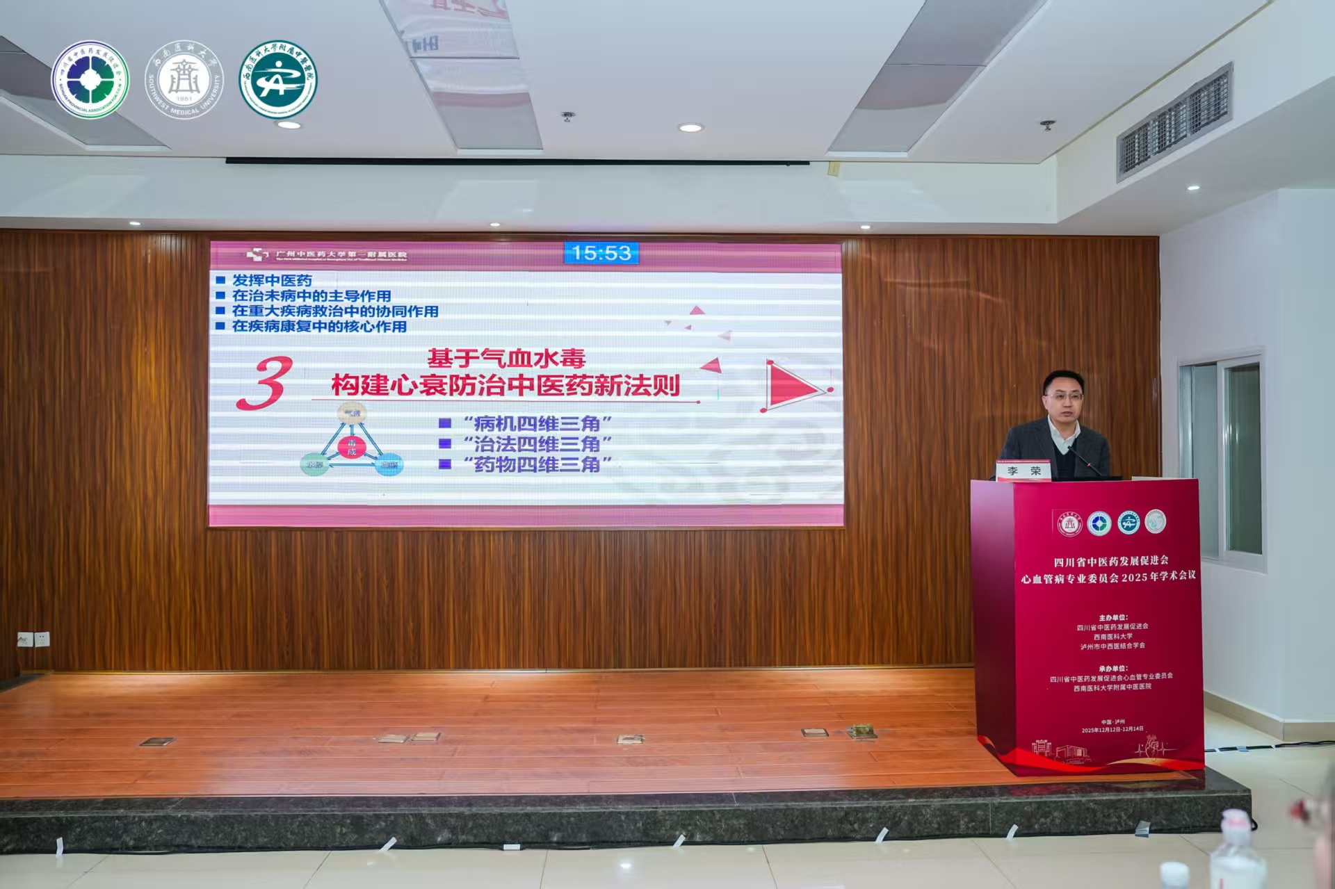 张春祥致辞。他介绍了西南医科大学的发展概况。他指出,中医药是中华民族的瑰宝,在世界上是独一无二的,具有广阔的发展前景,希望与会专家能够围绕中医、中西医结合诊治心血管疾病前沿主题畅所欲言、碰撞思想、凝聚共识,以创新理念与实践智慧共同引领学科发展方向。各位同仁要以此次学术会议为契机,进一步凝聚协同发展合力,携手推动四川省中医药心血管领域事业的高质量发展,为守护人民群众健康、服务区域经济社会发展做出新的贡献。